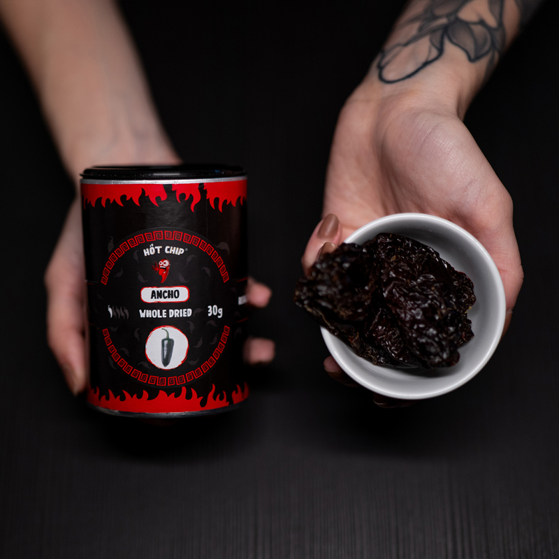 Jestli jsi milovník mexických pokrmů, pak by ve tvém chilli arzenálu neměly chybět papričky ancho! Ty se totiž v Mexiku používají snad do všech pokrmů. Jejich jemná pálivost a sladká švestková chuť s jemným kouřovým podtónem z nich totiž dělají mexický národní poklad.