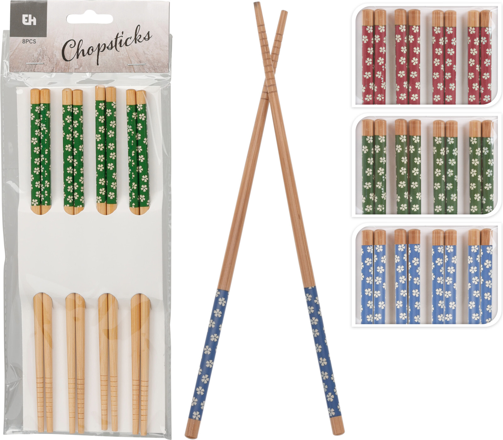 H&L Bambusové hůlky s červenou rukojetí a bílými květy (sada 8 ks, 24 cm)