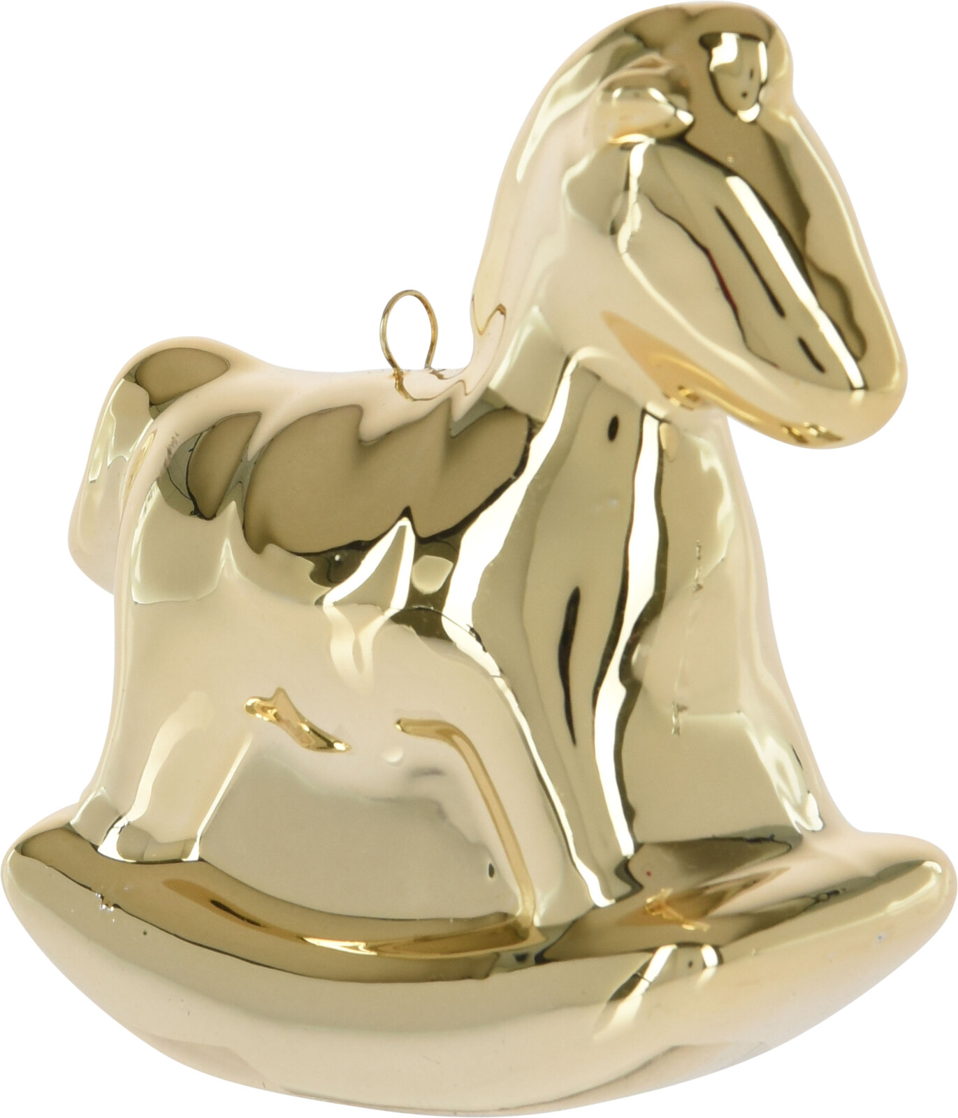 Malý zlatý houpací koník Vás zhoupne rovnou do vánoční pohody…Krásné vánoce! Závěsná vánoční dekorace.