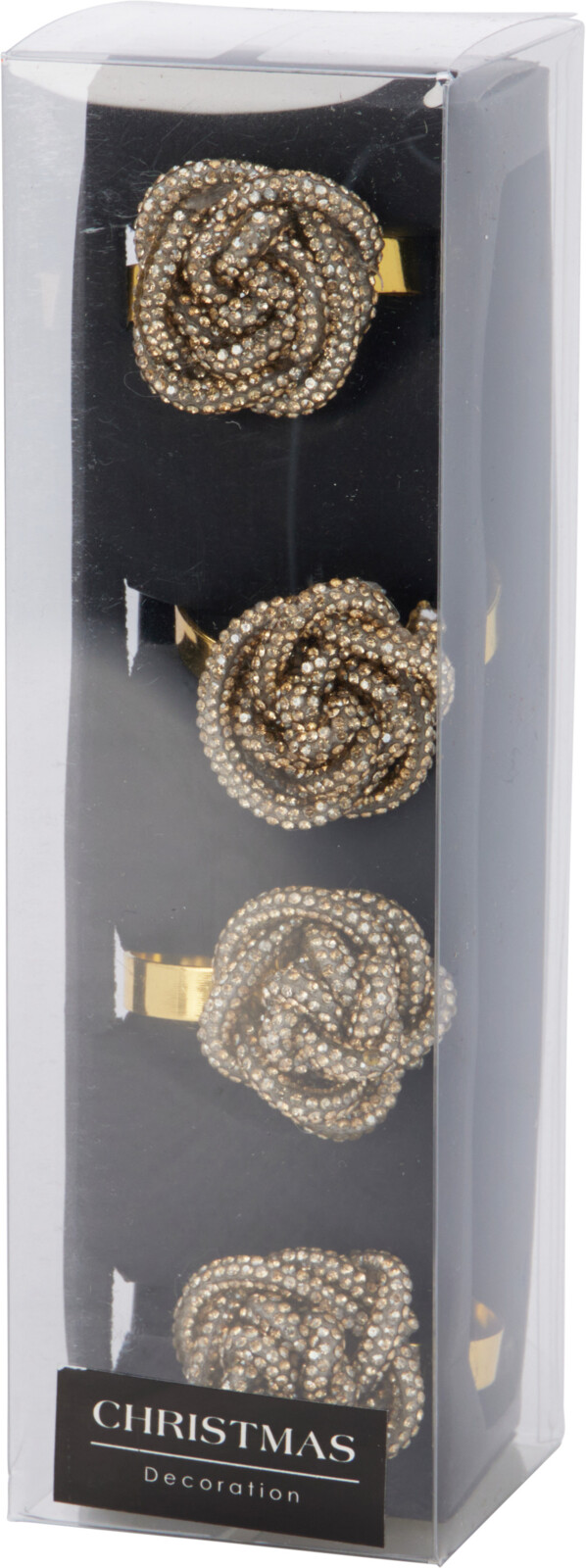 Dodejte svému prostírání punc luxusu a elegance s touto sadou 4 kroužků na ubrousky. Každý kroužek je vyroben z kvalitního zinku a má elegantní zlatou barvu, která se skvěle hodí pro slavnostní příležitosti, večeře s přáteli nebo rodinné oslavy. Dominantou každého kroužku je detailně propracovaná květina, která dodá vašemu stolu romantický a sofistikovaný vzhled.