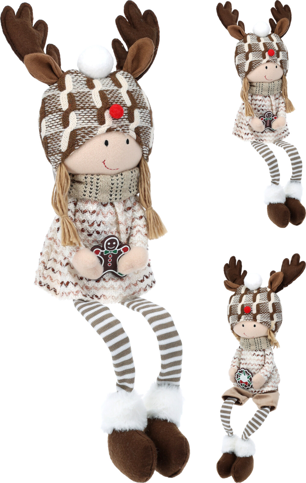 Celková výška této dekorace dosahuje 61 centimetrů, což jí propůjčuje výraznou přítomnost v každém vánočně vyzdobeném prostoru. Hlavní barvy dekorace jsou přírodní hnědá a jemná béžová, které vytvářejí harmonický kontrast a přidávají do prostoru teplý a přívětivý nádech. Vánoční dekorace klade důraz na detail, což jí dodává autentičnost a výjimečný charakter. Umístění tohoto chlapce s čepicí se sobími parohy do vašeho vánočního interiéru přinese do prostoru jedinečný kousek vánoční atmosféry, který zaujme a nadchne každého návštěvníka.