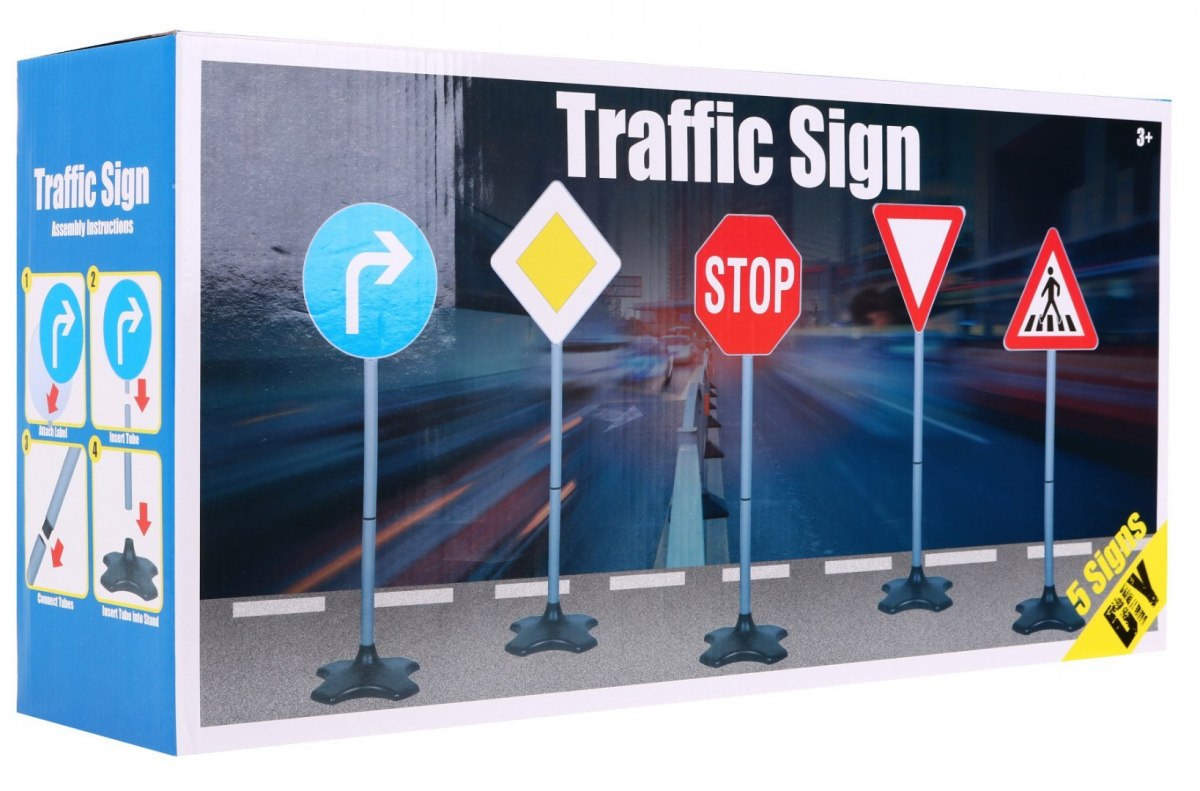 Hračka, která potěší každého malého „řidiče“. Ideálně se hodí pro domov i na zahradu. Dopravní značky lze rozložit na velký prostor a vytvořit skutečný komunikační řetězec. Jsou skvělé při jízdě na kole nebo v elektrickém autíčku. S touto hračkou se dítě rychle naučí pravidla provozu. Dopravní značky byly vyrobeny z pevných materiálů, s důrazem na detail.