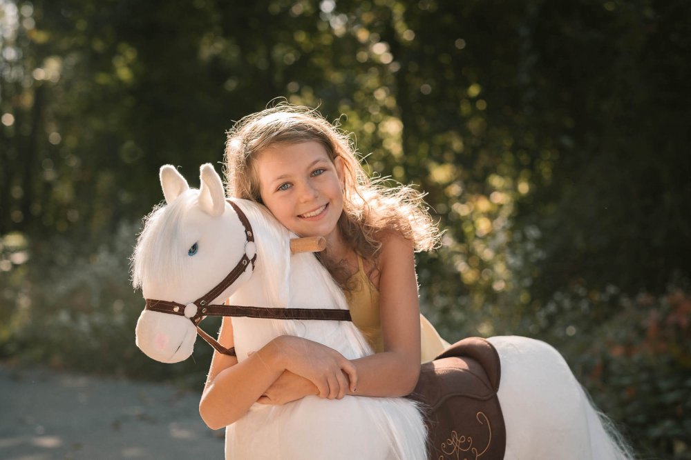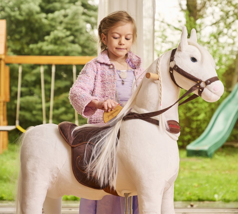 Další výhodou je možnost sedlo i ohlávku s otěžemi sundat – koníka Ponnie tedy můžete osedlat jako živého koně. Hřívu i ocas můžete česat a zaplétat na nich copánky.