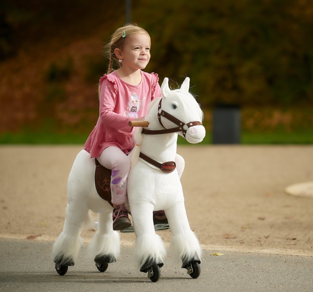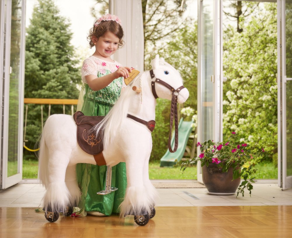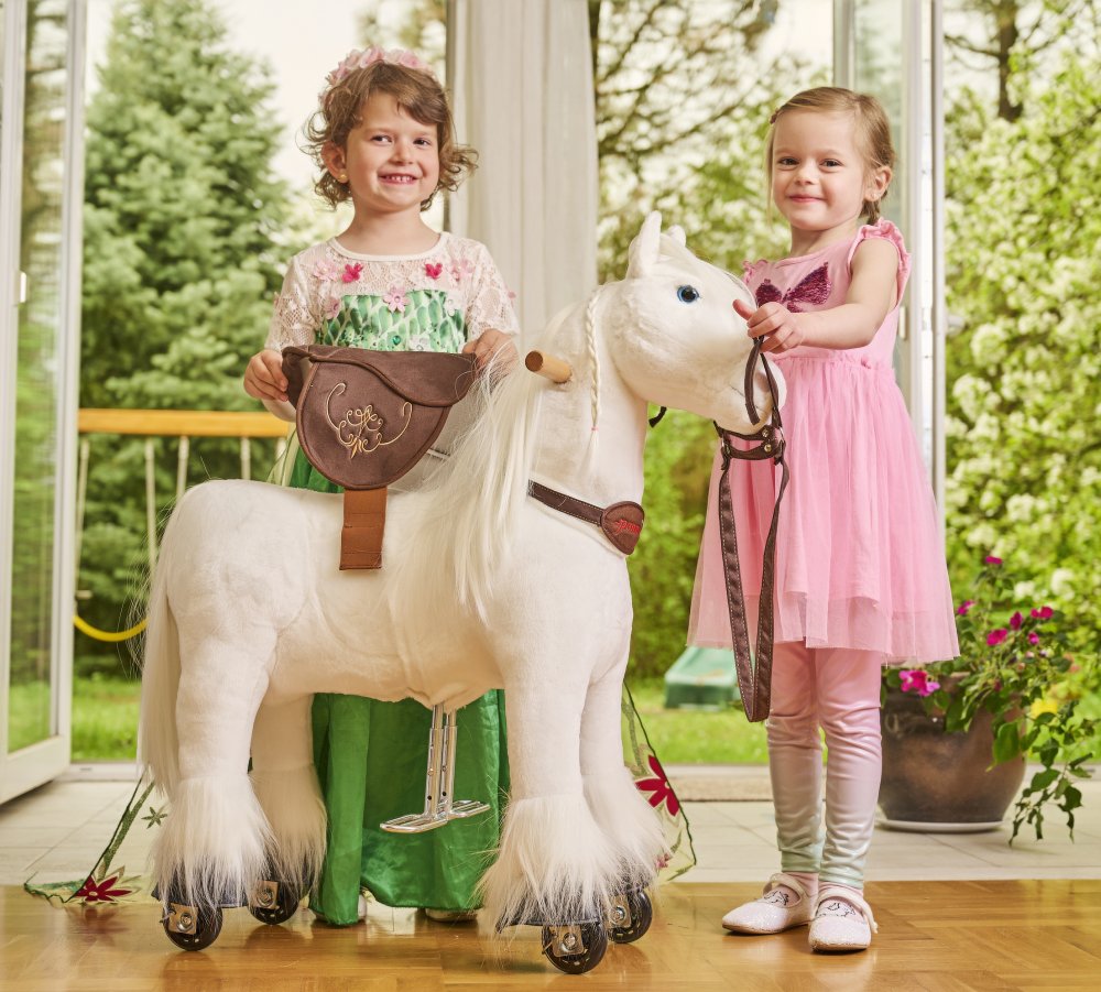 Něžný, čistý a elegantní. Přesně takový je náš mechanický koník Ponnie Tiara v bílém provedení. Jeho dlouhá hříva a ocas jsou navrženy tak, abyste se s chutí mohli pustit do tvorby účesů. Samotnou projížďku si děti užijí díky pohodlnému sedlu a tvarovaným pedálům.