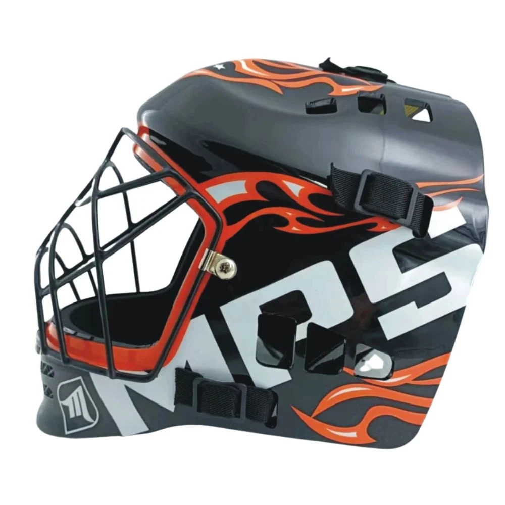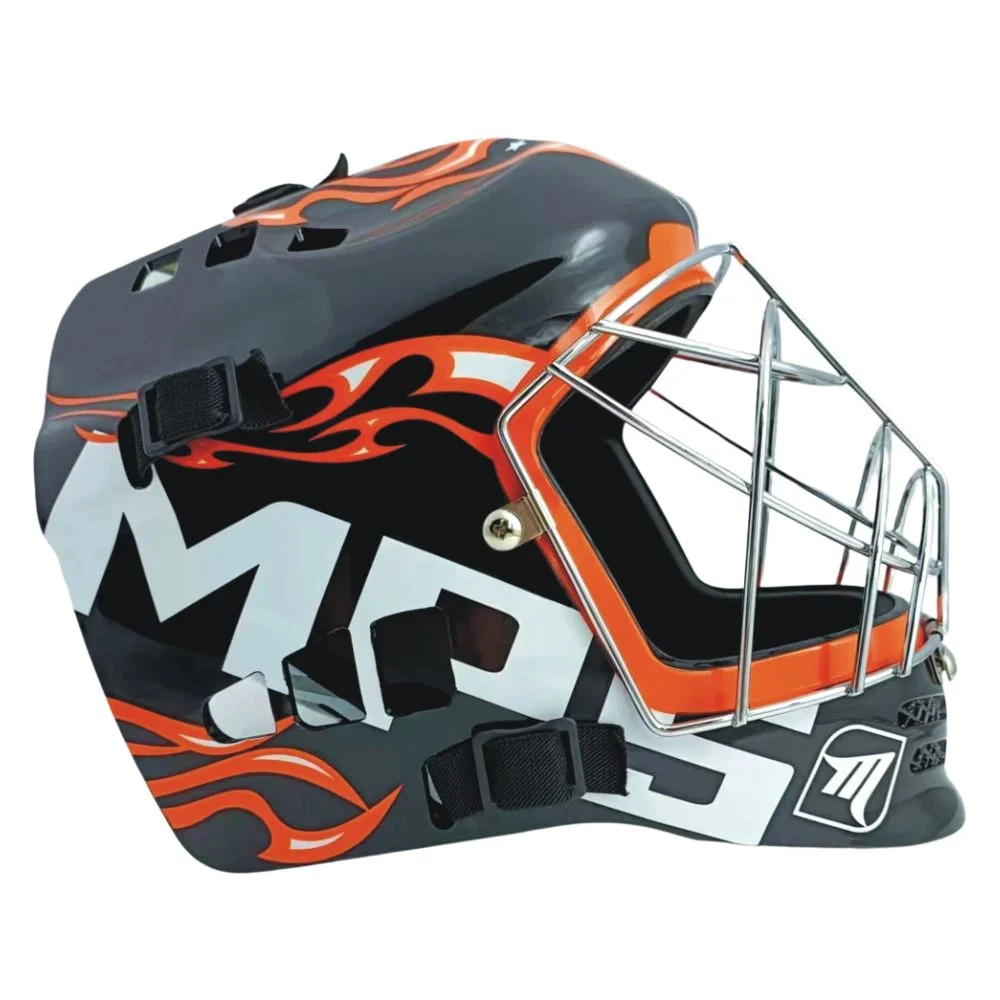 Brankářská maska MPS PRO FLAME Black/Orange vyrobená z mimořádně odolného plastu, který chrání vaši tvář. Maska je anatomicky polstrovaná a perfektně sedí díky nastavitelným pásům. Kvalitnější ventilace vzduchu je umožněna pomocí speciálních otvorů. Tvar masky zajišťuje brankáři velký přehled, bezpečnost a komfort. Maska má exkluzivní lesklý design, který je moderní a stylový.Materiálové složení: