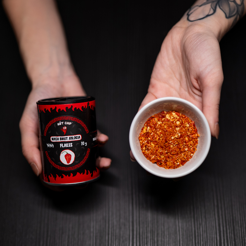Vločky z této papričky jsou skutečnou výzvou. Naga Bhut Jolokia je totiž velmi silným hráčem na poli chilli. Jakmile tě její pálivost polapí, bude tě pronásledo…