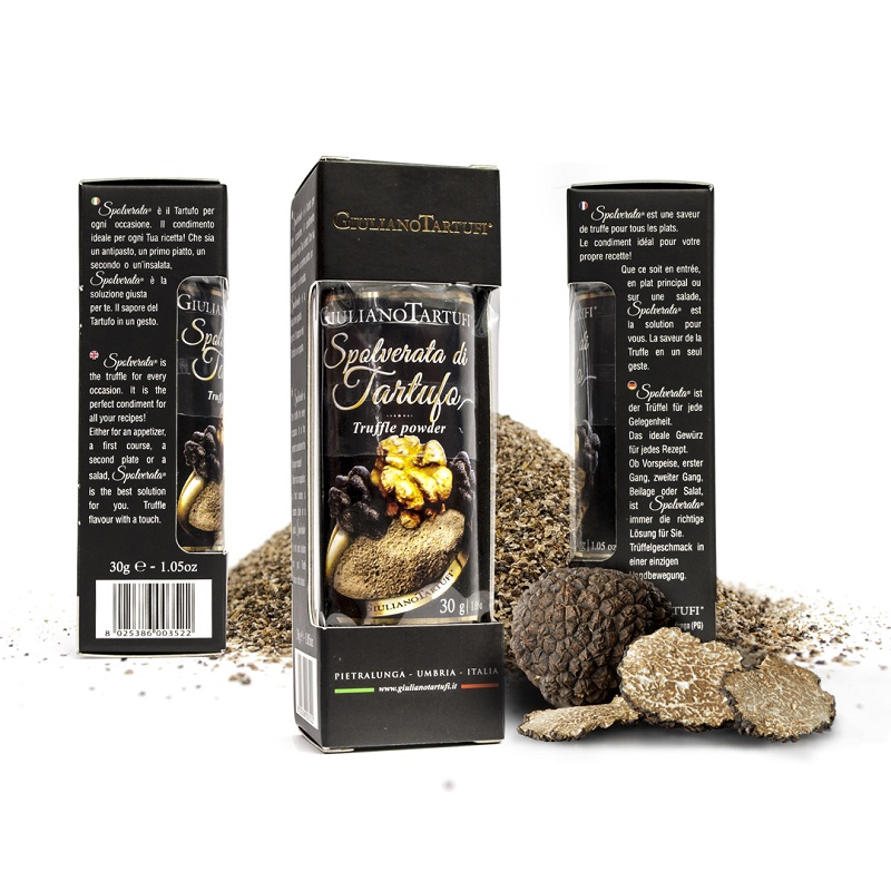 Prémiové lanýžové koření Spolverata® je výjimečné koření. díky svému snadnému použití je ideální pro dochucení mnoha pokrmů a dodává lanýžovou chuť jakémukoli pokrmu. Spolverata®, je na bázi lanýžů, která je velmi oblíbeným produktem spotřebitelů a profesionálů v oblasti gastronomie, je dnes nejvíce podmanivou a výherní myšlenkou celé řady produktů Giuliano Tartufi.