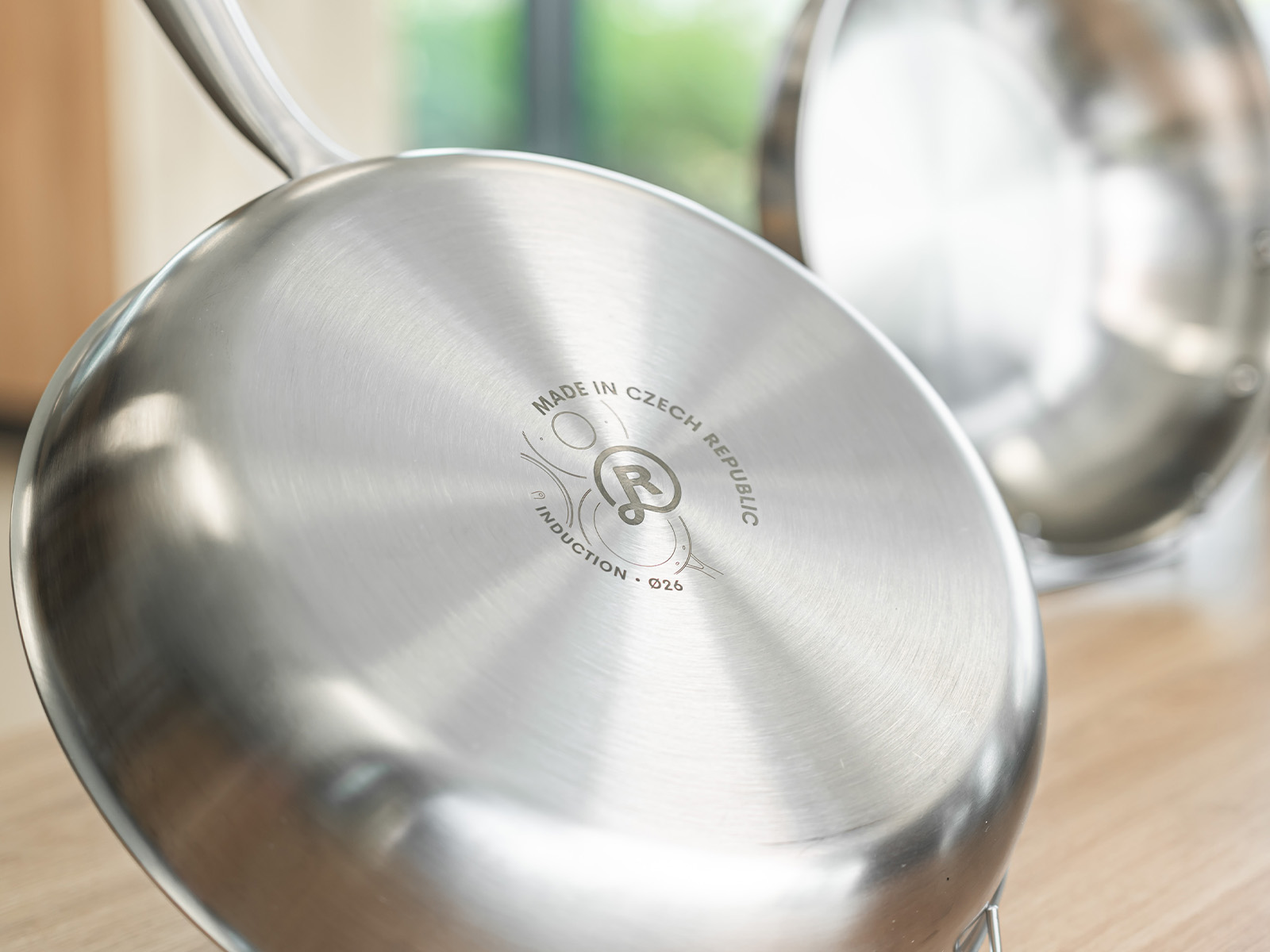 Pánev Remoska® Proxima má třívrstvý nerezový povrch je 100 % non-toxic a zcela zdravotně nezávadný, kombinuje teplotní vodivost hliníku a zároveň odolnost nerezové oceli. Díky dnu o síle 2,5 mm si pánev udržuje stabilní teplotu a bude tak rovnoměrná, rychlá a bez připálení. Údržba je velmi jednoduchá, po vaření můžete nádobí snadno umýt v ruce nebo vložit do myčky. Nádobí je vhodné pro všechny typy sporáků, včetně indukce, a bez obav ho můžete vložit i do trouby až do 220 °C.