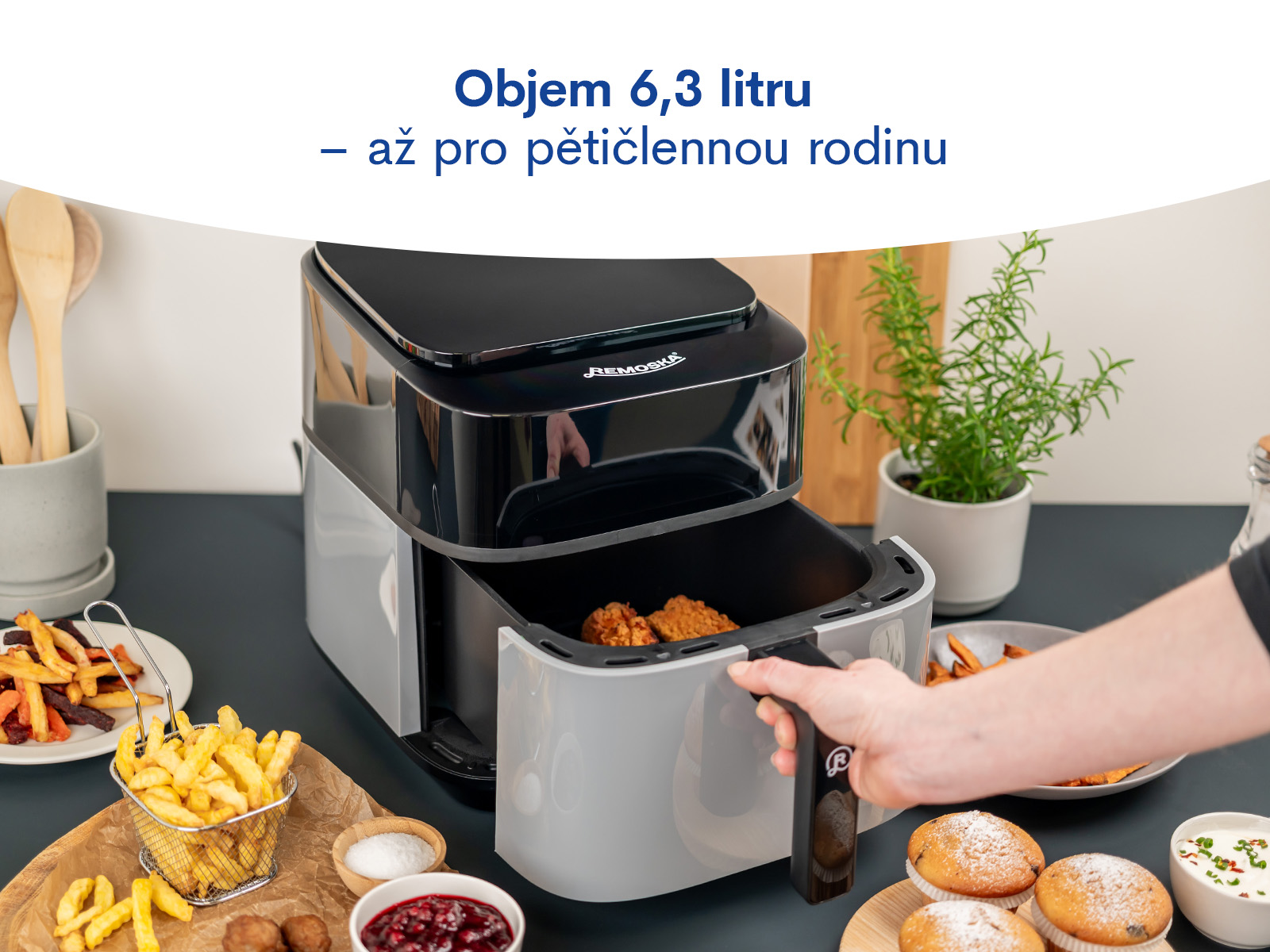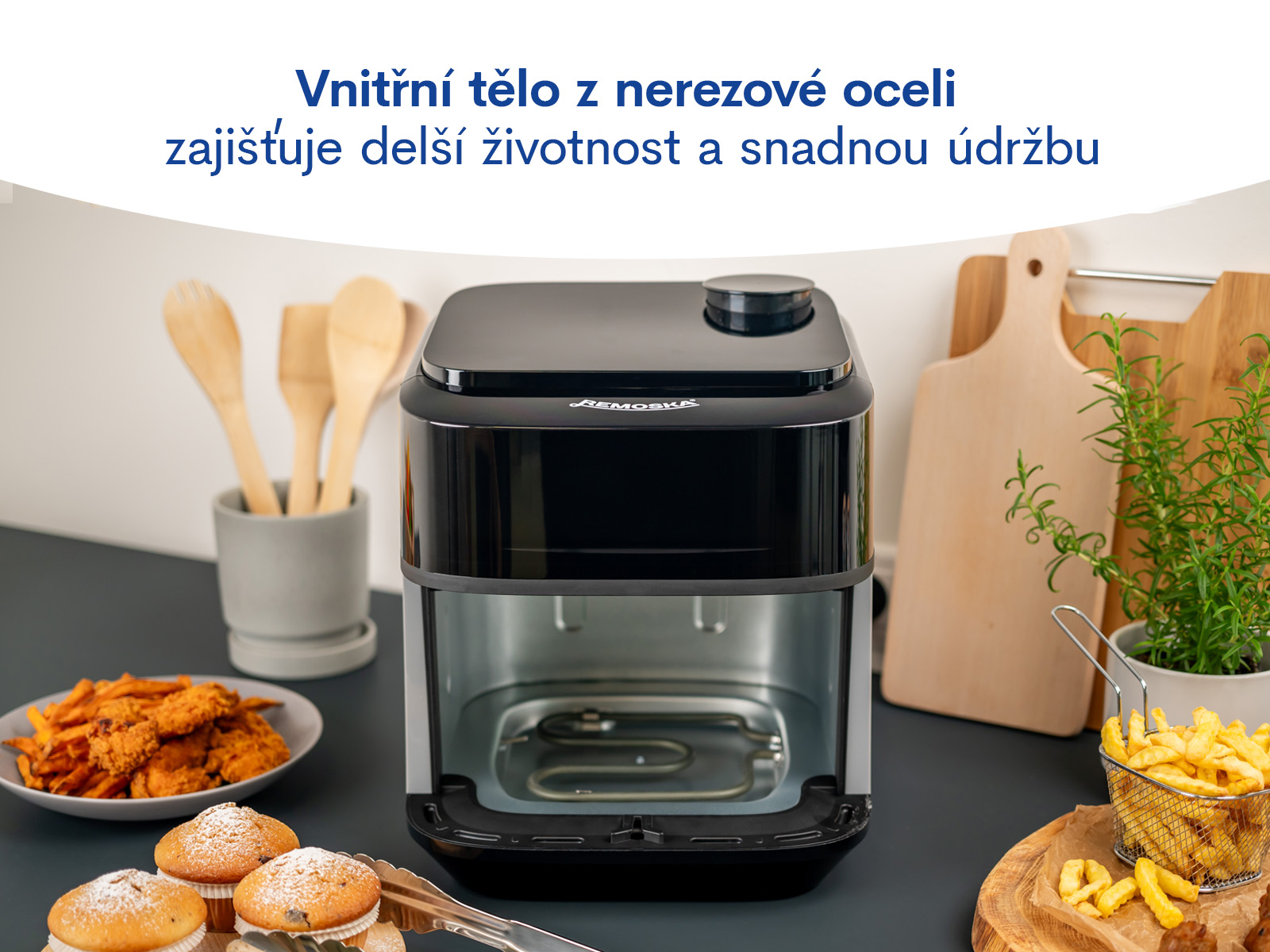 Horkovzdušná fritéza Remoska® Vento SteamChef zvládne opravdu vše – od dokonale křupavých hranolek a dozlatova usmažených kuřecích nugetek, přes šťavnaté ryby a rozpečené pečivo, až po výtečně upečené dezerty.