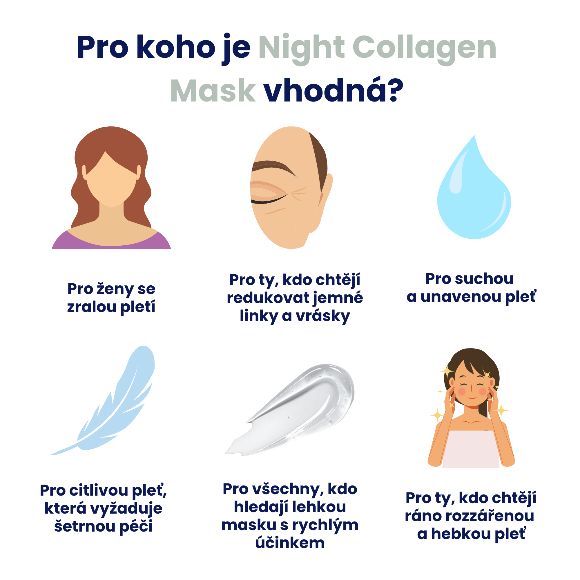 GlowGEN 500 Da Noční Kolagenová maska 50 ml Probuďte se s pletí, která vypadá odpočatě, hladce a mladistvě.Noční kolagenová maska GlowGEN 500 Da kombinuje tripe…