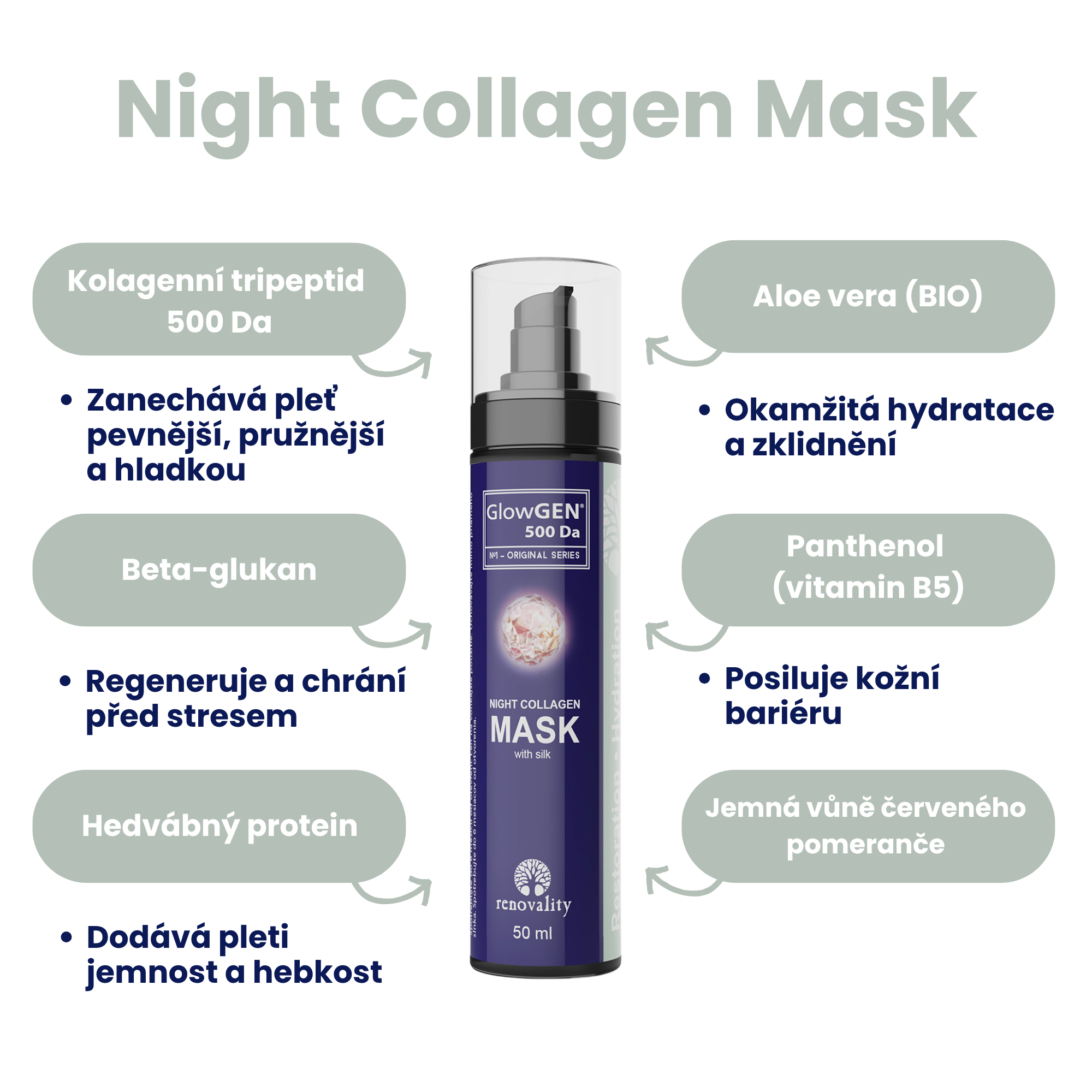 Renovality GlowGEN 500 Da Noční Kolagenová maska 50 ml