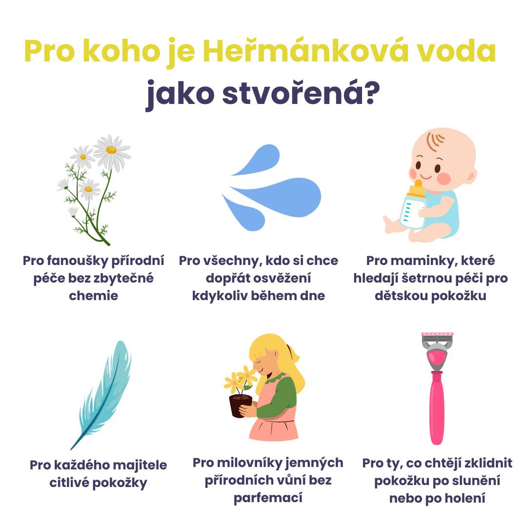 Vstupte do světa jemné péče, kterou si vaše pokožka zamiluje!Heřmánková voda přináší vaší pleti rozjasnění, zklidnění a osvěžení, jaké si zaslouží. Tyto benefit…