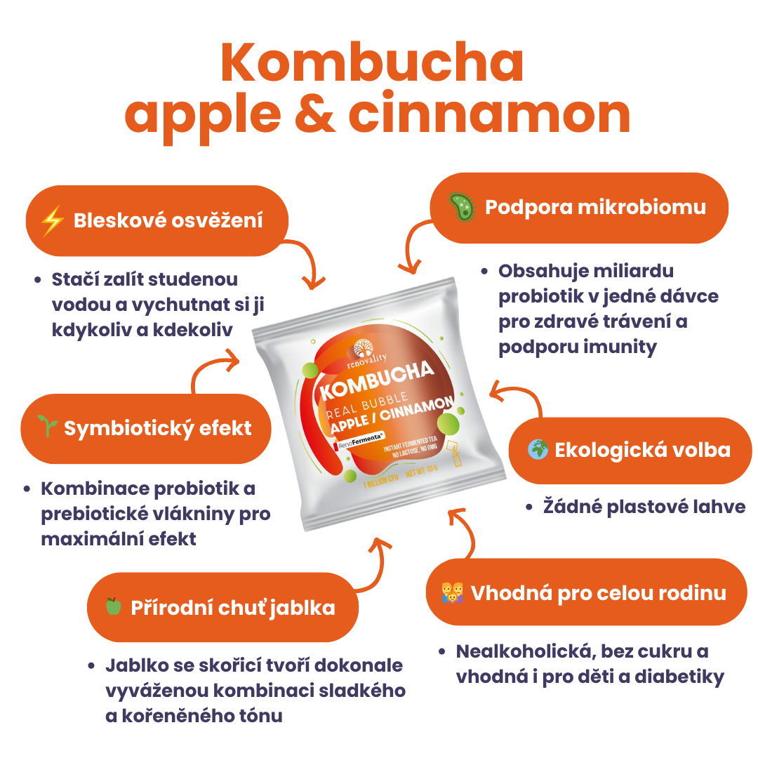 Renovality Kombucha Real Bubble Apple/Cinnamon Množství v balení: 10 ks