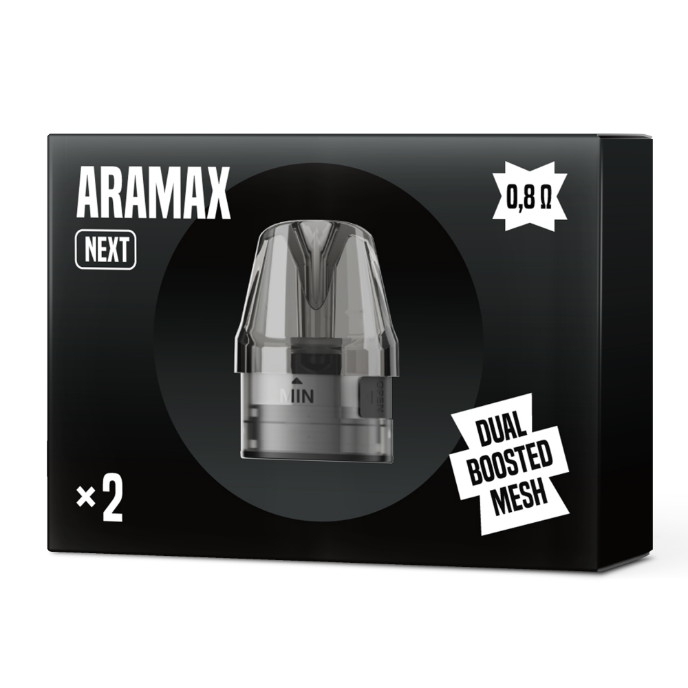 Originální náhradní cartridge pro elektronickou cigaretu Aramax Next POD. Žhavící hlava z kanthalového meshe o odporu 0,8 Ω je konstruována pro výtečnou chuť a silný nikotinový "kick". Cartridge z PCTG plastu pojme až 2ml e-liquidu a její přívod vzduchu je regulovatelný. Novinkou je pak boční plnění uzavíratelné gumovou záslepkou.