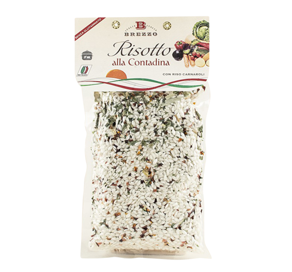 | Složení | Italská rýže Carnaroli, zelenina v různém poměru (cibule, petržel, pórek, rajče, mrkev). |