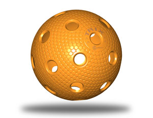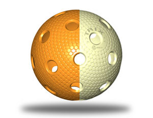 Florbalový míček TRIX - dvoubarevná, vyrobená z plastu splňuje všechny požadavky pro vrcholový florbal.