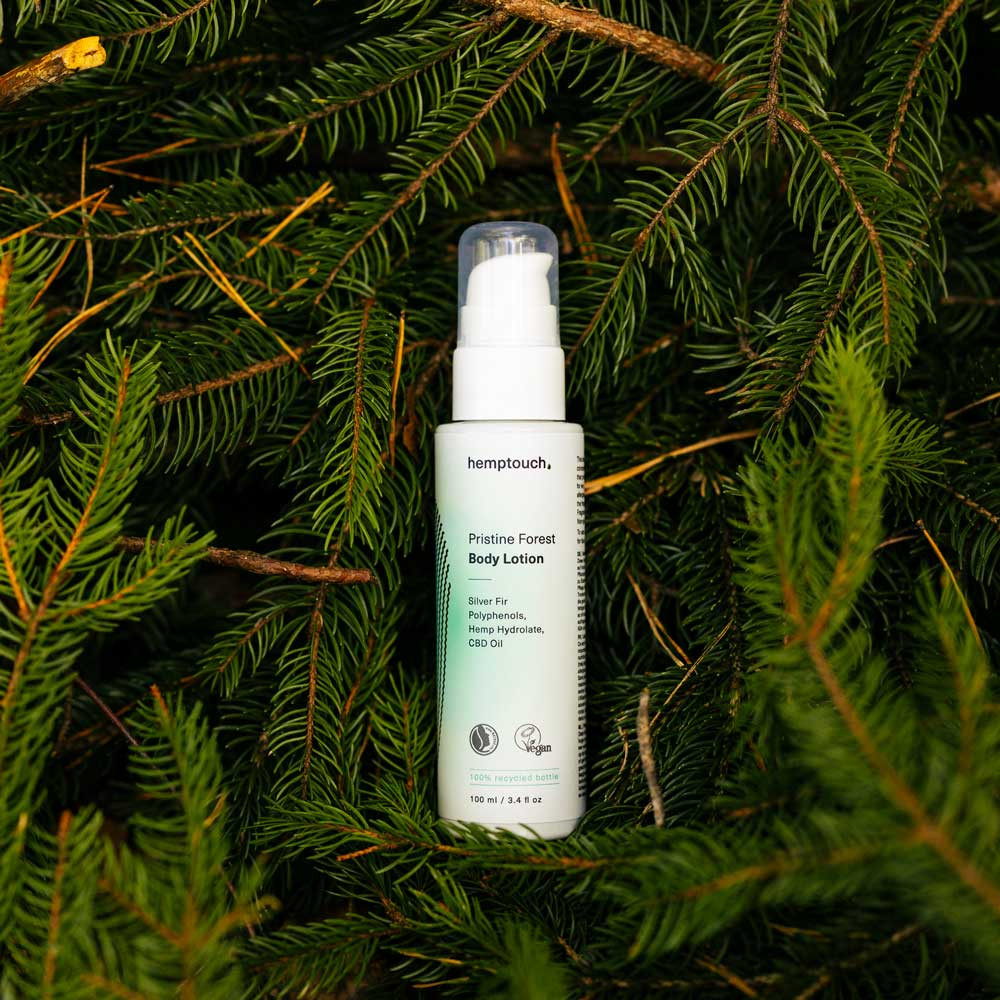 Hemptouch postavil recepturu hydratačního tělového mléka na květové vodě z konopí, polyfenolech ze stříbrné jedle, kyselině hyaluronové, konopném oleji a konopném extraktu. Konopný hydrolát, olej a výtažek si, mimochodem, vyrábí tým Hemptouch z vlastního konopí, které pěstuje na poli ve slovinských horách: