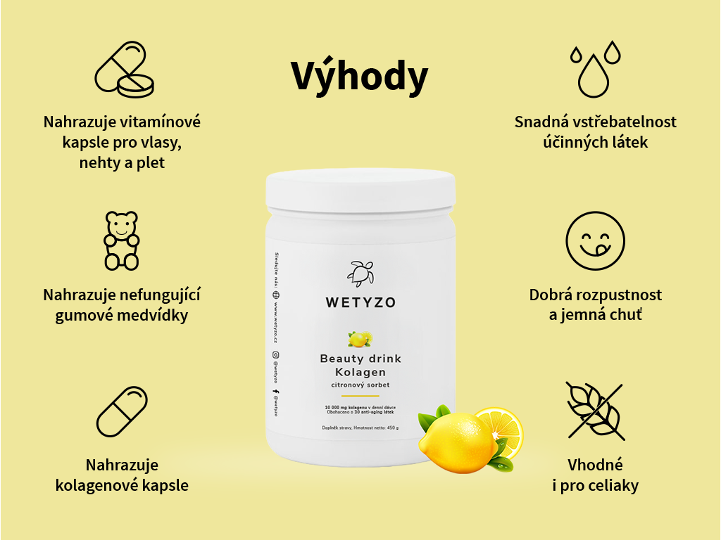 | Vlastnost / Výhoda | Wetyzo kolagen | Konkurence |