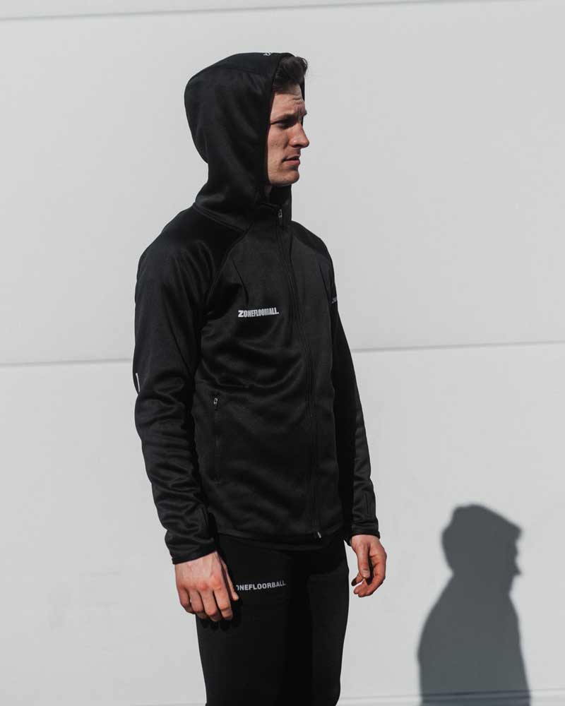 Velice příjemná mikina Zone Hood Zip Modern v prodlouženém užším střihu a unisex designu. Zapínání na zip, kapuce a dvě přední kapsy na zip. Stříbrné reflexní logo Zonefloorball na hrudníku a rameni. Vyrobená je z kvalitního polyesteru, který rychle schne.